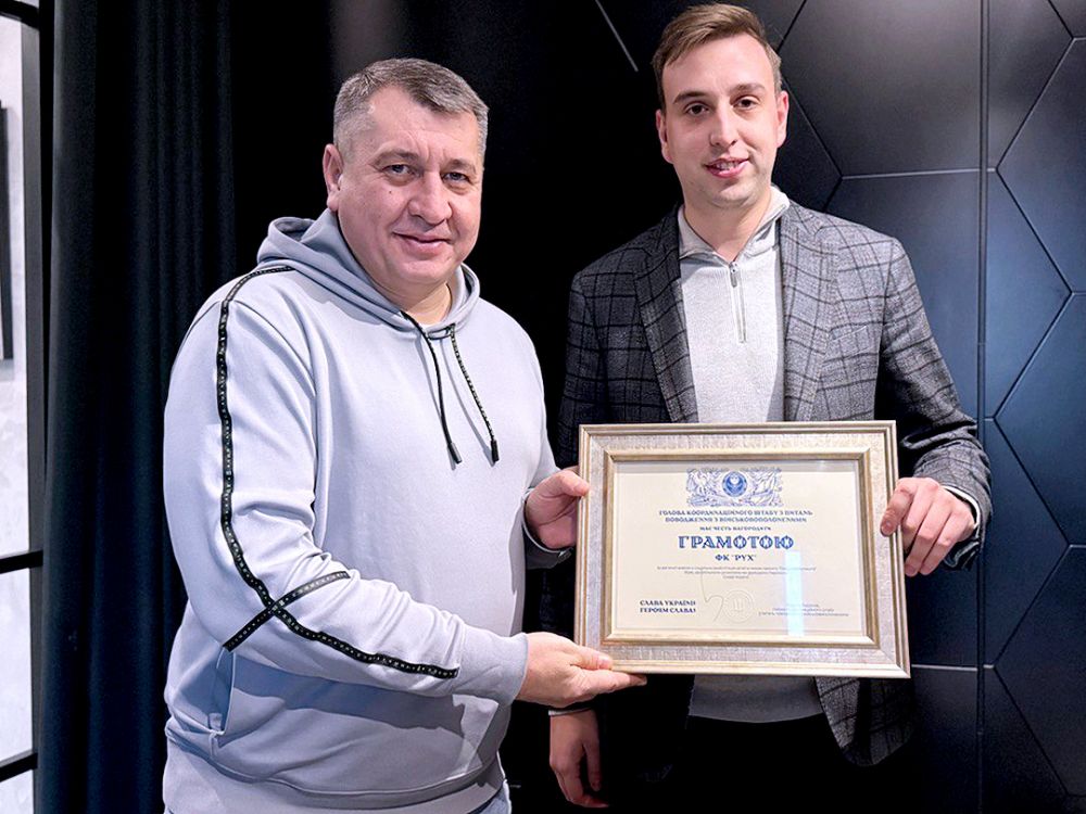 ФК «Рух» и Григорий Козловский награждены за вклад в реабилитацию детей военнослужащих. ФК «Рух» стал первым клубом, который получил награду за участие в проекте «Люди будущего».